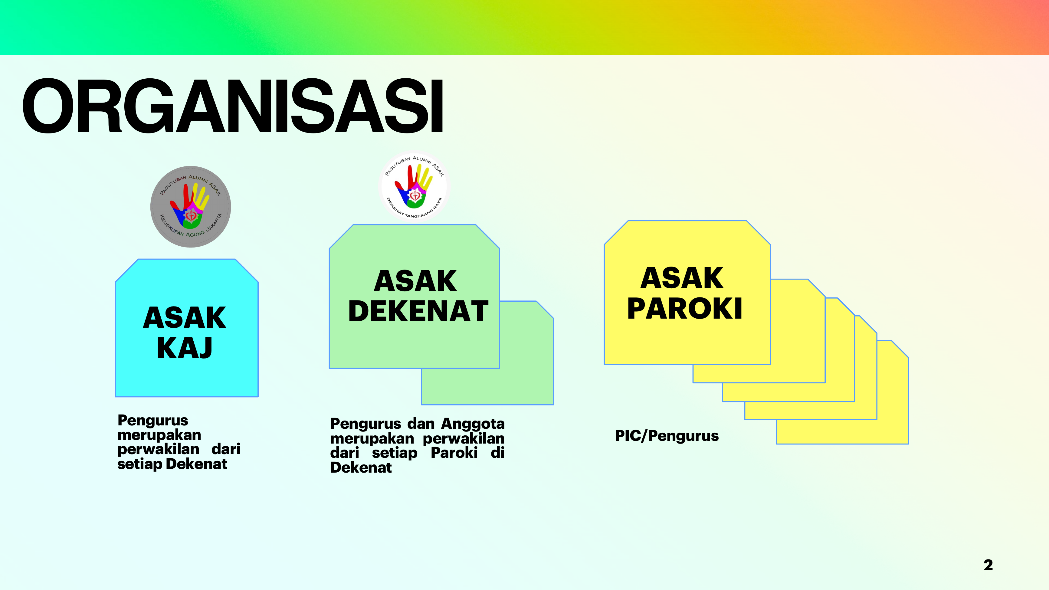 - ASAK Dekenat — Pengurus + Anggota adalah perwakilan dari tiap Paroki di Dekenat.