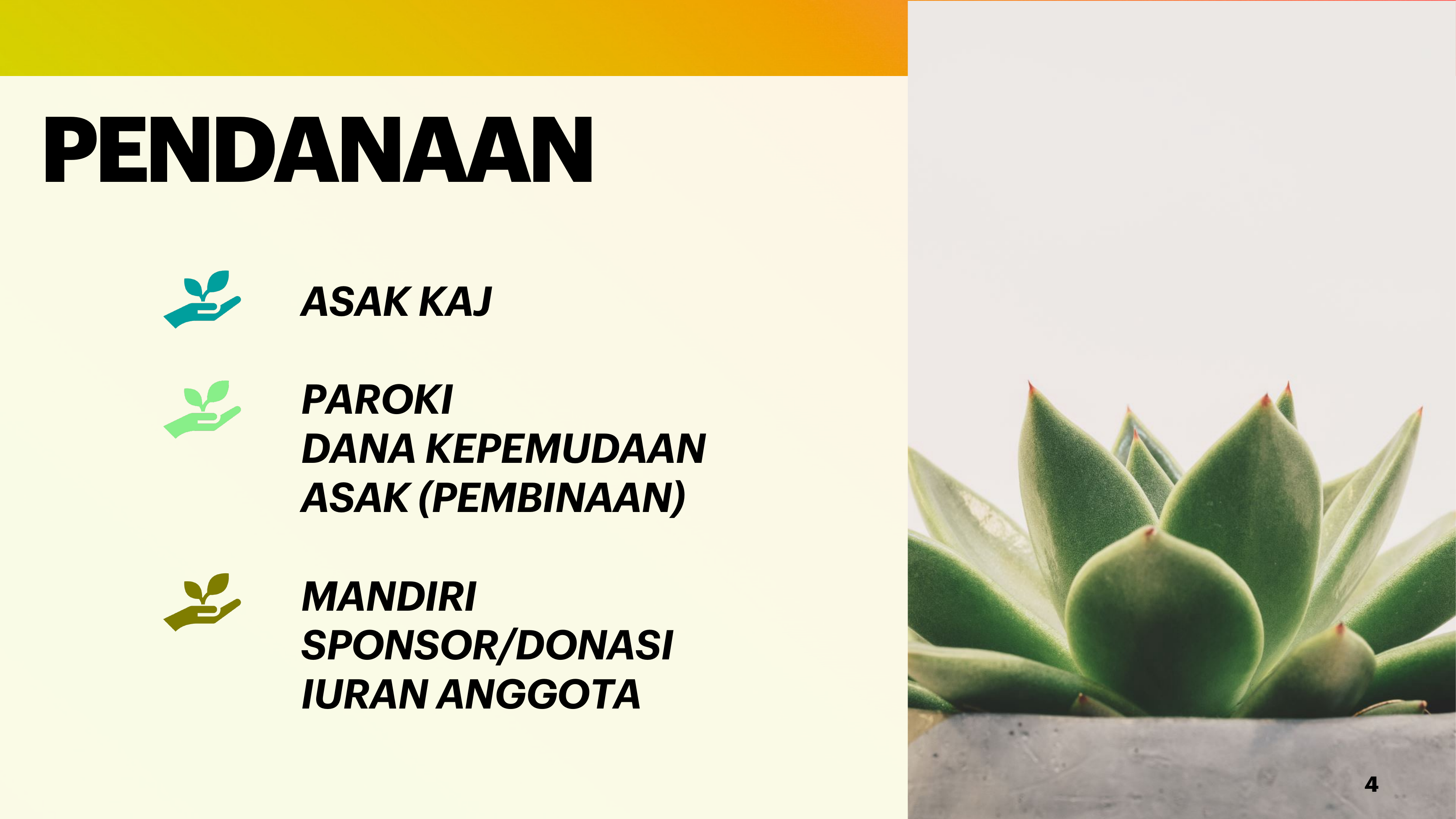 - Paroki — Dana Kepemudaan ASAK (Pembinaan) — bagian dari dana pembinaan paroki dipakai untuk PAA paroki.